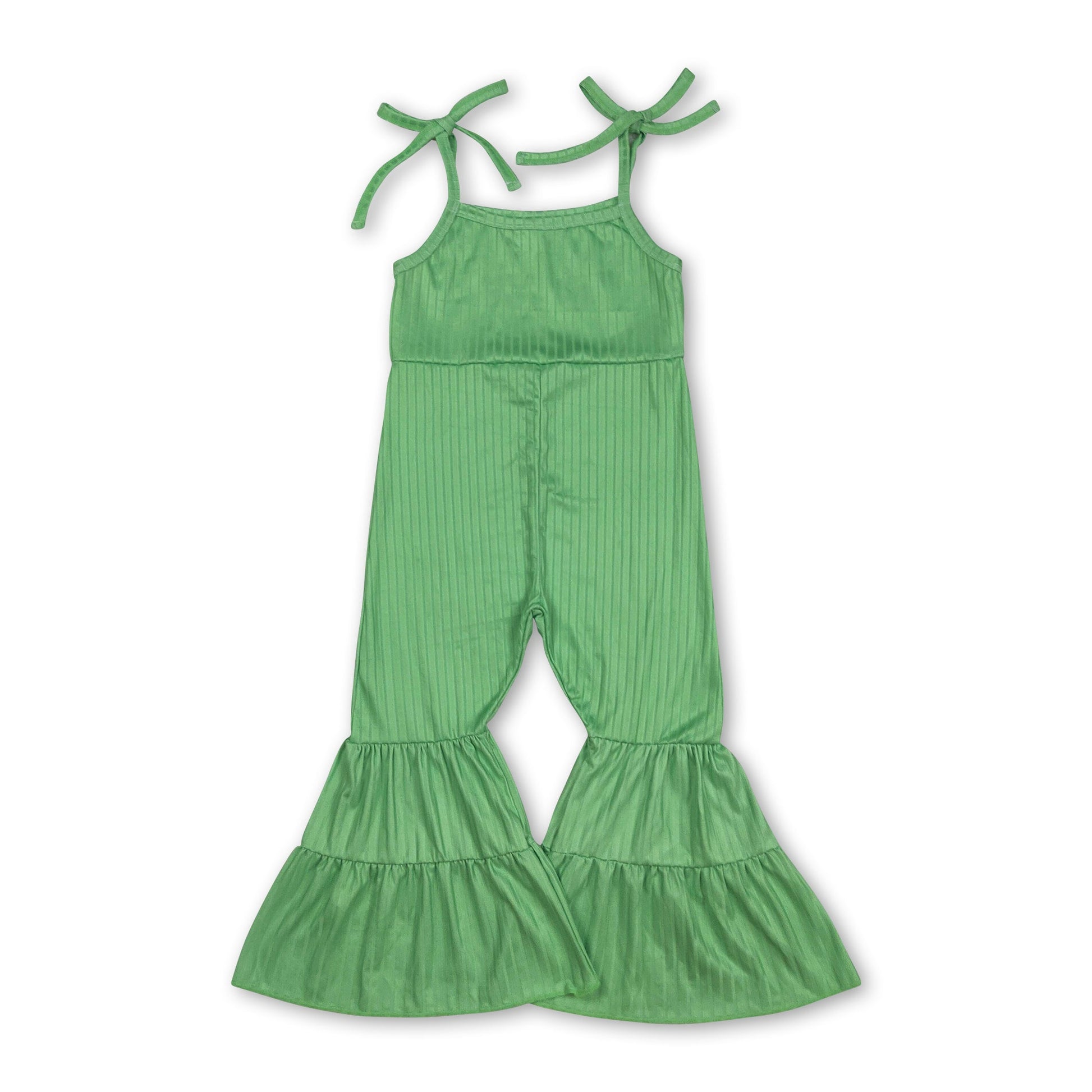 Green straps patchwork ruffle kids girls jumpsuit