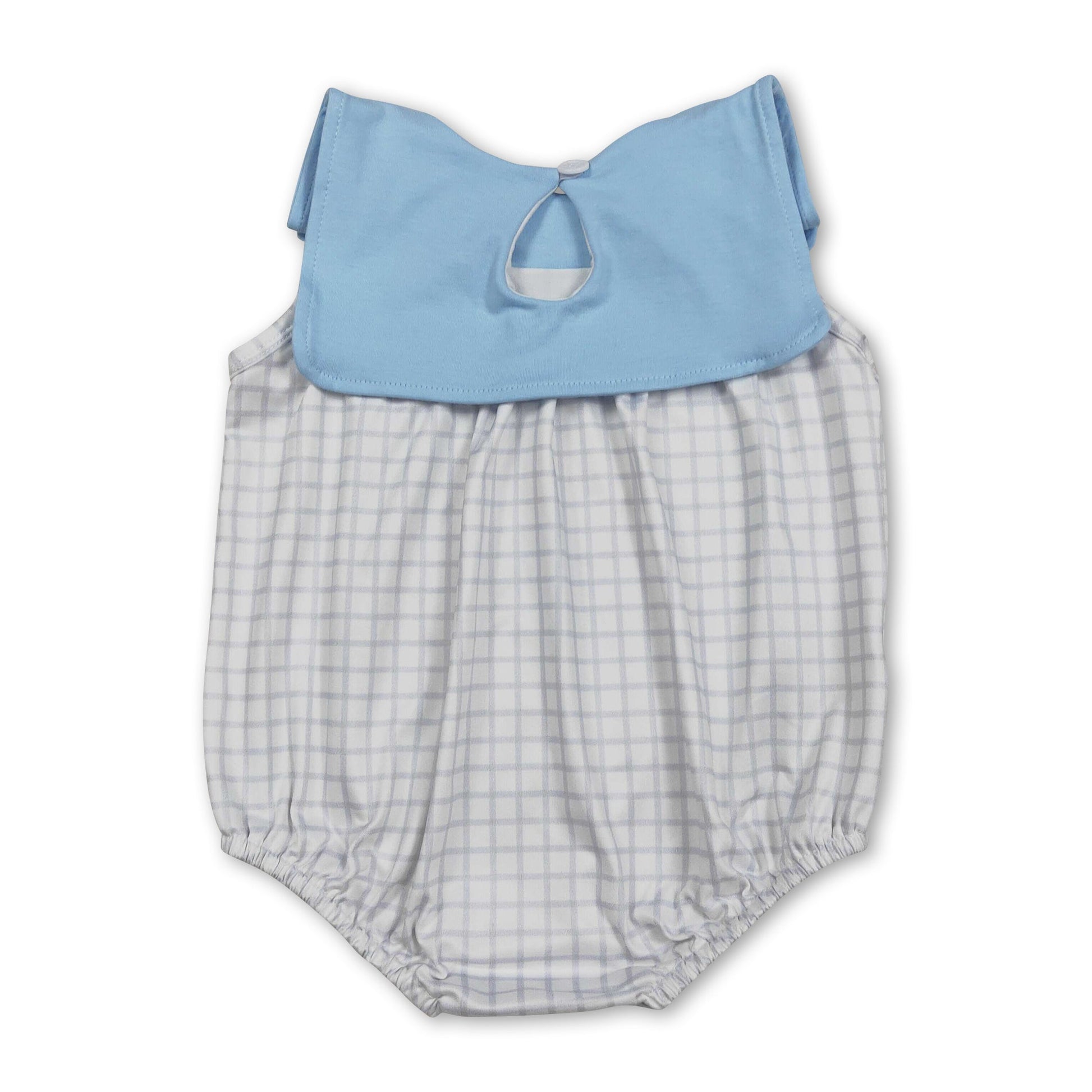 Light blue sleeveless plaid baby boy summer romper